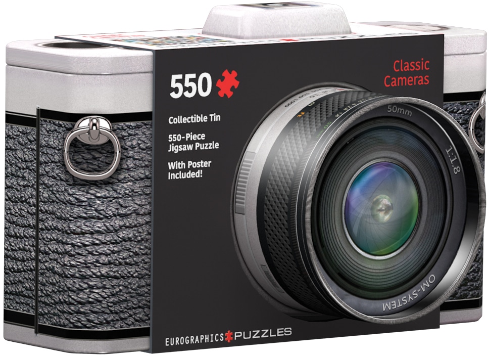 Eurographics Classic Camera – Παζλ 550 τεμαχίων Ο George Eastman εφηύρε το φιλμ Kodak και την κάμερα Kodak τη δεκαετία του 1880, η ερασιτεχνική φωτογραφία έγινε ευρέως δημοφιλής και οι κάμερες έγιναν πολυάριθμες και ποικίλες. Σήμερα, οι συλλέκτες συνήθως αποκτούν vintage κάμερες για τα μοναδικά τους σχέδια!