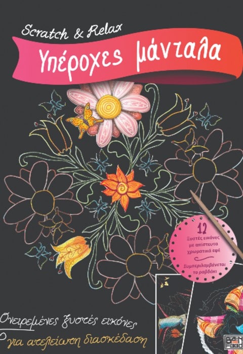 Ονειρεμένες ξυστές εικόνες για ατελείωτη διασκέδαση 12 ξυστές εικόνες με απίστευτα χρωματικά εφέ. Συμπεριλαμβάνεται το ραβδάκι Με αποσπώμενες εικόνες! Χρωματικές αρμονίες με μάνταλα! Χρησιμοποιήστε το ραβδάκι που περιλαμβάνεται στην έκδοση για να φτιάξετε τη δική σας ξεχωριστή μάνταλα. Ανακαλύψτε λαμπερά πολύχρωμα μοτίβα με απίθανους χρωματικούς συνδυασμούς, κρυμμένα κάτω από τη μαύρη επίστρωση. Δημιουργήστε μάνταλα με ασυνήθιστα χρωματικά εφέ! Έχετε τις επιλογές: • Να αποκαλύψετε όλες τις επιφάνειες και τα χρώματα. • Να επιλέξετε μονάχα κάποιες λεπτομέρειες που θέλετε να αναδείξετε. • Να γίνετε δημιουργικοί, τοποθετώντας δικά σας σχήματα, γραμμές και σημεία στην εικόνα. Διασκεδάστε δημιουργικά με 12 συναρπαστικές και ξεχωριστές μάνταλα!